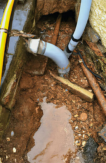 Professional detection and repair of burst underground mains or branch lines, identified through pooling water, soggy ground, or unexplained high water bills.